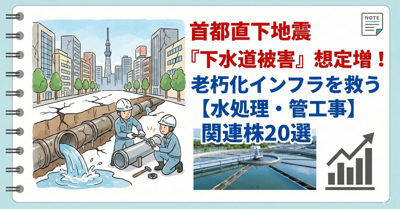 ◎ 注目理由: いくら丈夫な水道管を使っても、それを支える「地盤」が液状化してしまえばひとたまりもありません。同社の薬液注入工法などの地盤改良技術は、下水道管敷設時の地盤強化や、地震後の復旧工事で威力を発揮します。都市部の狭い現場でも施工可能な技術力を持ち、老朽化インフラ対策+防災の両面で恩恵を受ける銘柄です。業績は連続最高益更新基調にあり、成長力も魅力。