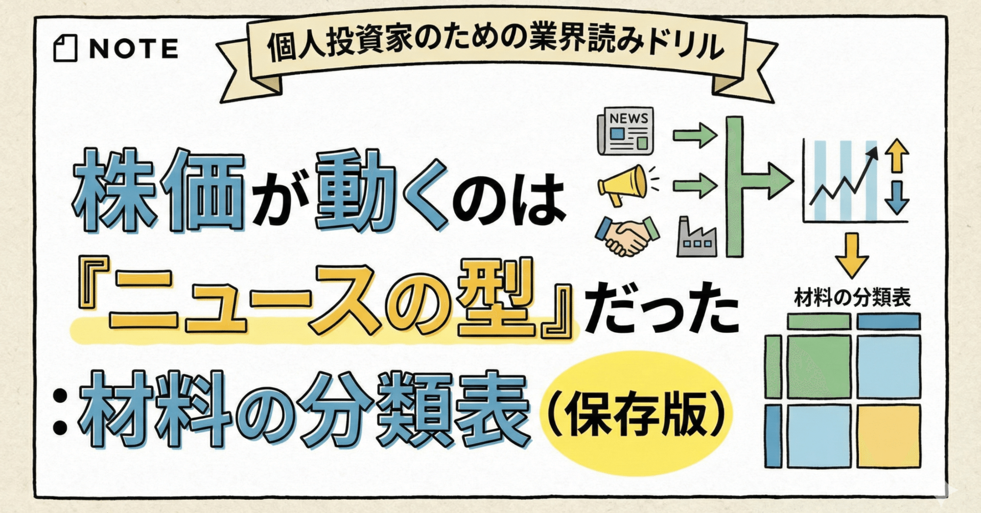 本記事では、日本株市場で頻出する材料を「ニュースの型」として分類し、それぞれが株価にどのような影響を与える傾向があるのかを解説します。この記事を読むことで、以下の3点が得られます。