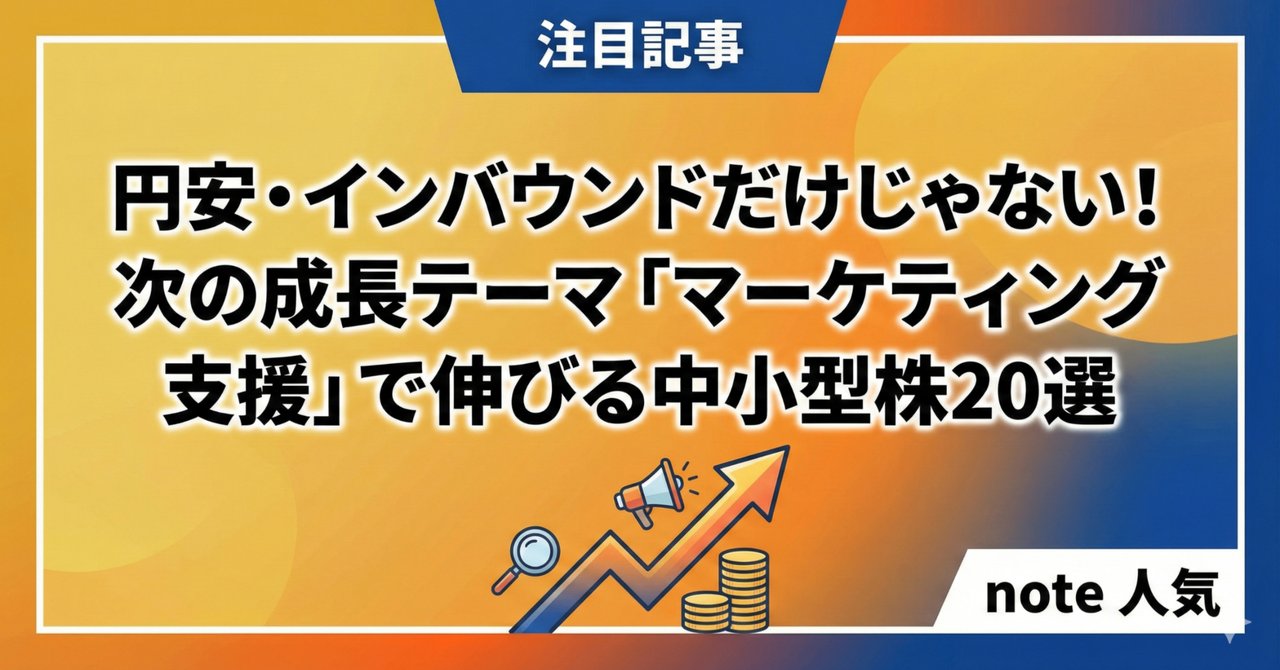 インバウンドや円安といった外部環境に依存せず、自らの技術とノウハウで市場を切り開く「最強の内需株」。それが今回ご紹介するマーケティング支援銘柄です。ポートフォリオの成長エンジンとして、ぜひ詳細をご確認ください。