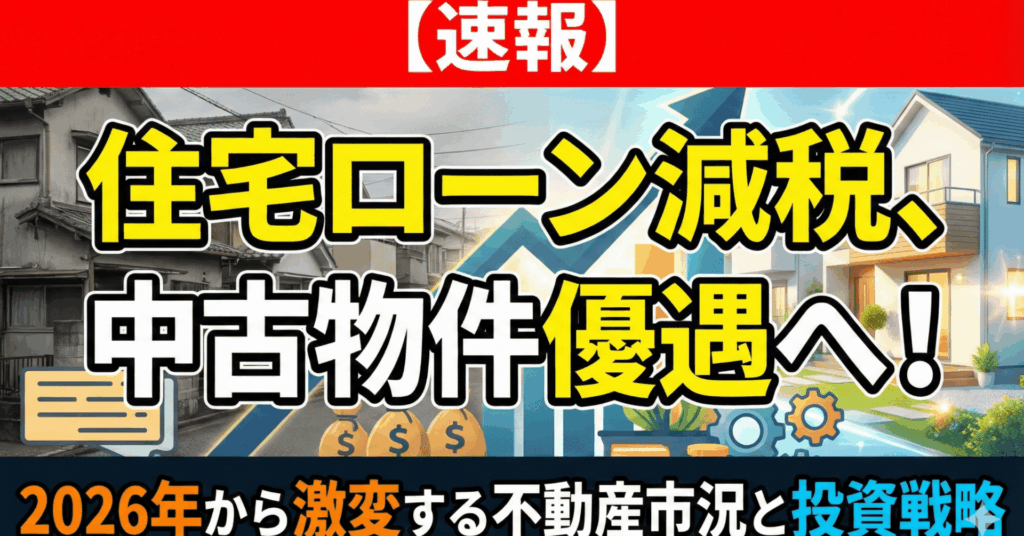 【速報】住宅ローン減税、中古物件優遇へ!2026年から激変する不動産市況と投資戦略