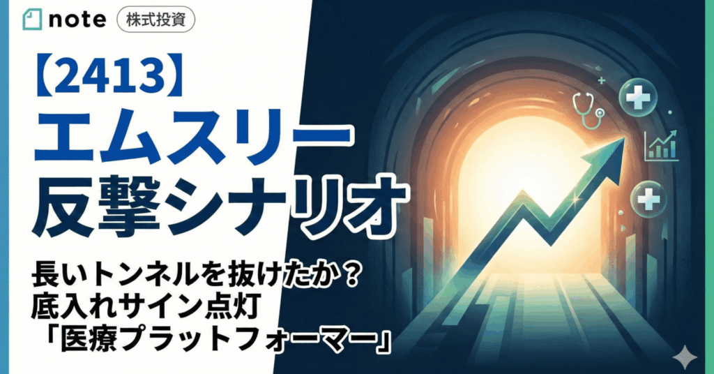 はじめに:投資家の皆様へかつて「日本最強のグロース株」として君臨し、投資家のポートフォリオに輝きを与え続けたエムスリー。しかし、2021年の高値を境に、株価は長く厳しい調整局面を迎えました。コロナ特需の剥落、グロース株への逆風、そして成長鈍... -