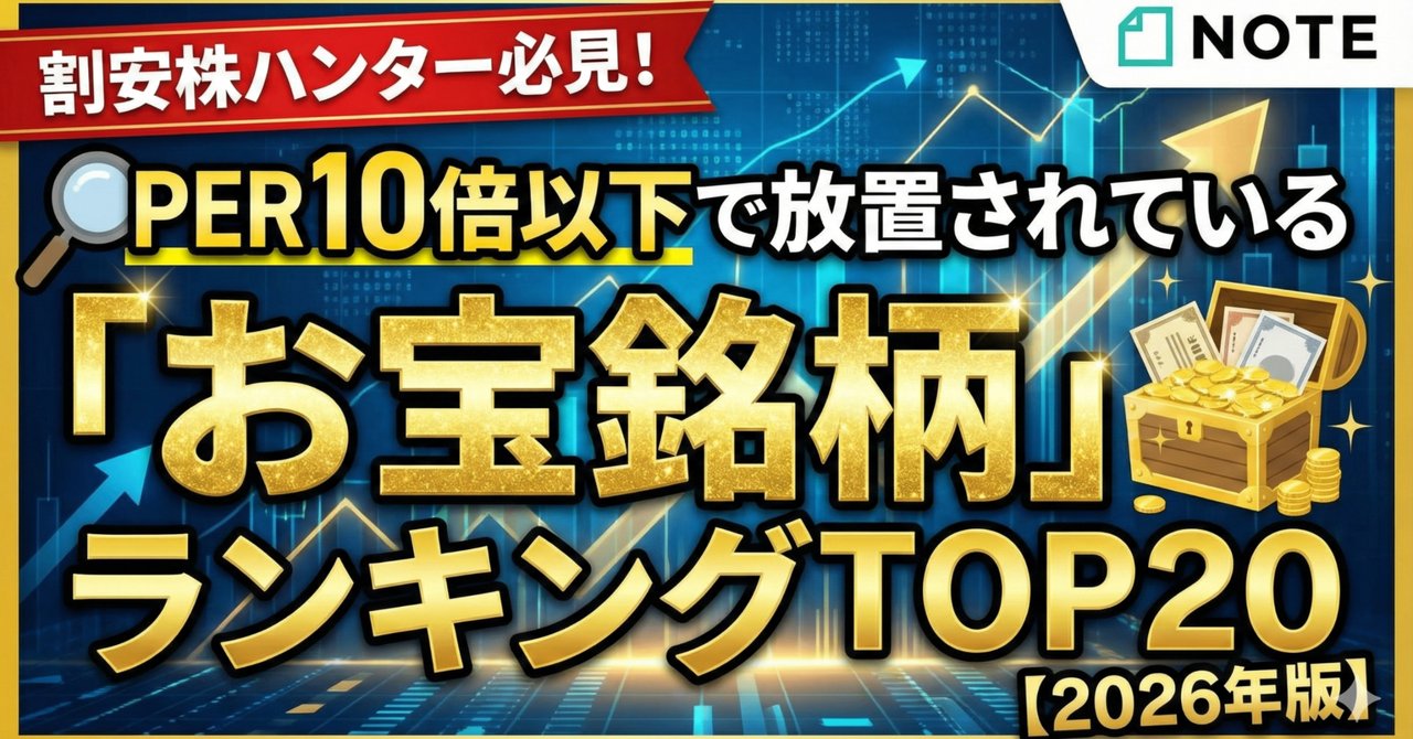 割安株ハンター必見!PER10倍以下で放置されている「お宝銘柄」ランキングTOP20【2026年版】