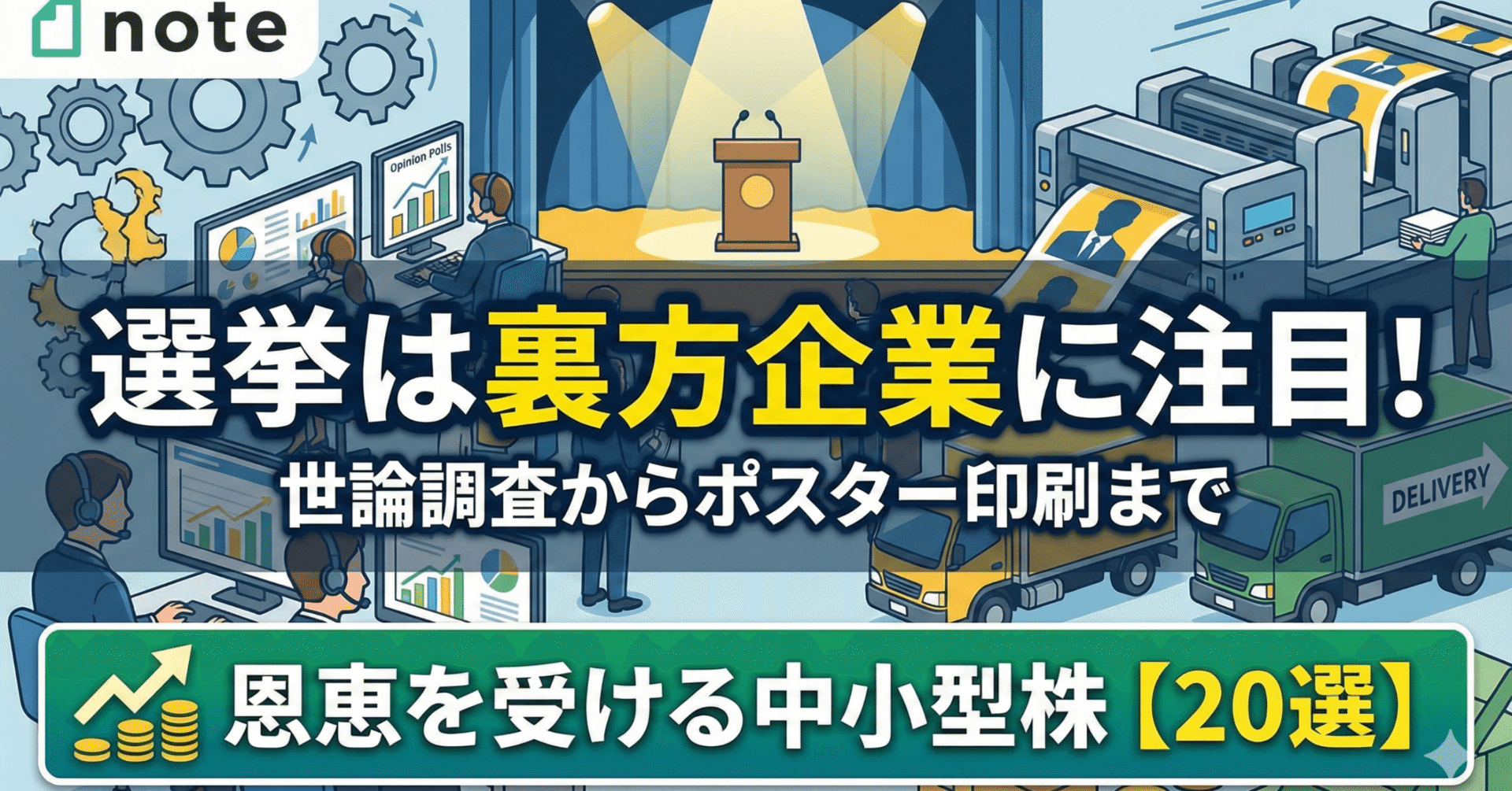 本記事では、誰もが知る大型株ではなく、選挙というテーマにおいて真価を発揮する、時価総額数百億円から一千億円程度の中小型株を中心に20銘柄を厳選しました。選定にあたっては、単なる連想買いにとどまらず、実際の業績寄与が期待できるか、あるいは市場での「テーマ性」としての認知度が確立されているかを重視しています。