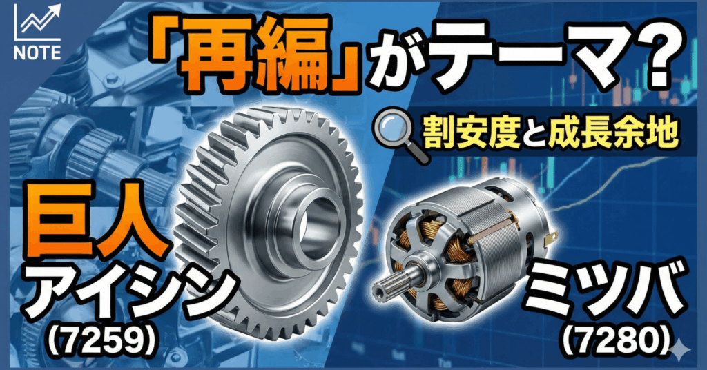 自動車部品株は「再編」がテーマ?巨人「アイシン(7259)」の動向から読み解く、ミツバ(7280)の割安度と成長余地