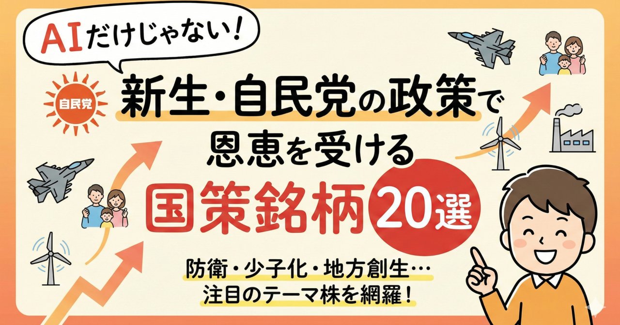 【免責事項】 本記事は、特定の銘柄への投資を推奨するものではなく、情報の提供のみを目的としています。掲載されている情報は、作成時点(2026年2月)における入手可能なデータや市場動向に基づいた分析ですが、その正確性や完全性を保証するものではありません。政治情勢や政策方針の変更、マクロ経済環境の変化により、株価は大きく変動する可能性があります。投資に関する最終的な決定は、必ずご自身の判断と責任において行ってください。本記事の情報を利用した結果、生じたいかなる損害についても、当方は一切の責任を負いかねます。