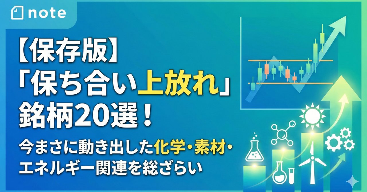 株式市場には、長い沈黙を破り、蓄積されたエネルギーが一気に解放される瞬間があります。それが「保ち合い上放れ(もちあいうわばなれ)」です。これまでの市場は、半導体やAI関連などのハイテク株が牽引してきましたが、2026年を迎え、資金の潮流は明らかに変化しています。投資家が今、熱視線を送っているのは、長らくレンジ相場(ボックス圏)で力を溜め込んでいた化学・素材・エネルギーといった「重厚長大」産業です。