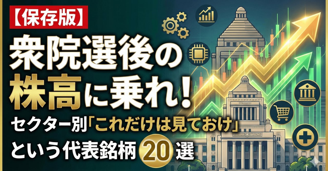 今回選定した20銘柄は、これらの「国策」ど真ん中に位置し、かつ業績面でも強固な裏付けを持つ企業ばかりです。誰もが知る超大型株はあえて避け、実需に伴う確実な成長が見込める中大型銘柄を中心に、プロが注目する「通」な銘柄を厳選しました。衆院選後の政策期待と、2026年の業績相場を勝ち抜くための「最強のポートフォリオ」として、ぜひ参考にしてください。