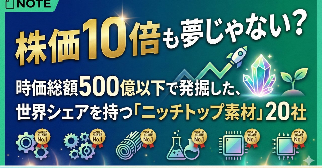 日本の株式市場において、真の「宝」はどこに眠っているのでしょうか。それは、誰もが知る大型株の華やかなニュースの裏側、サプライチェーンの深層部に隠されています。特に、日本が世界に誇る「素材・化学・部材」の分野には、時価総額500億円以下でありながら、特定のニッチ市場で圧倒的な世界シェア、あるいは国内独占シェアを持つ「グローバル・ニッチ・トップ(GNT)」企業が数多く存在します。