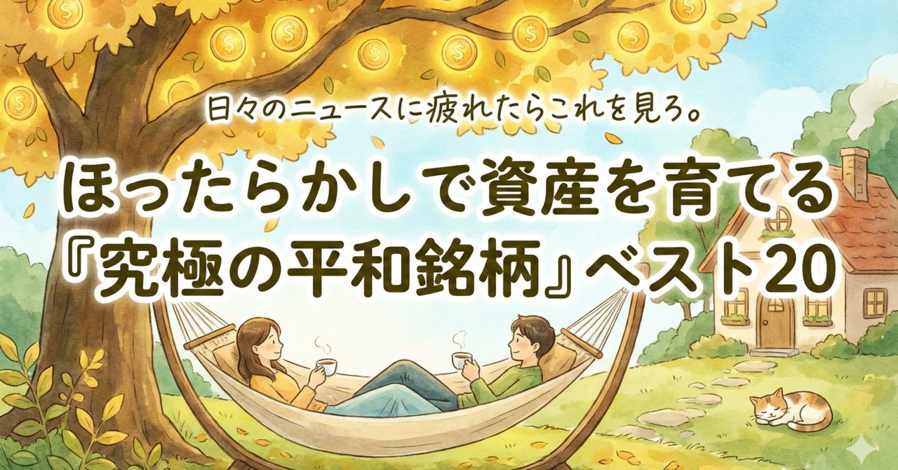 だが、株式市場には別の世界がある。チャートを毎日確認しなくても、どんな不況が来ても、配当を粛々と積み上げながらじわじわと株主の資産を育ててくれる銘柄群だ。それが本記事のテーマ「究極の平和銘柄」である。