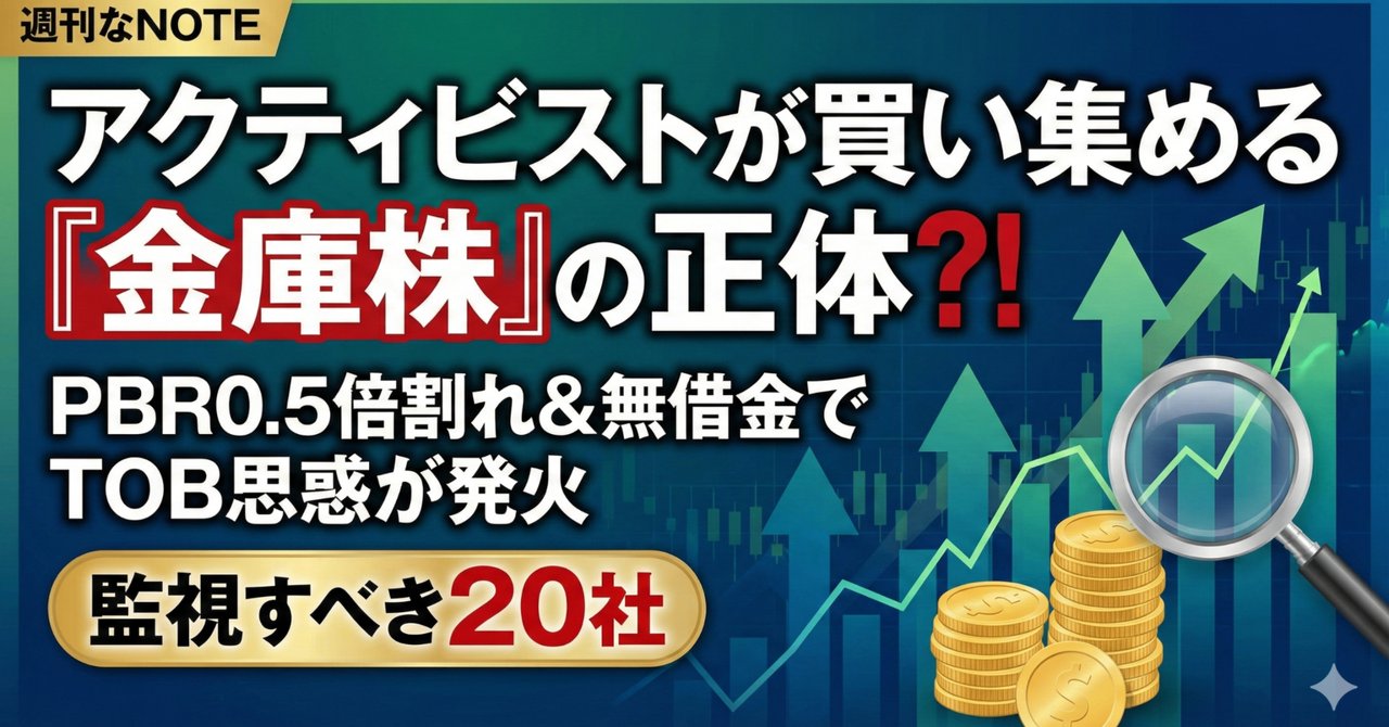 東証改革が進む中、PBR0.5倍割れ・無借金・キャッシュリッチという「金庫株」の条件を満たす企業は、アクティビストにとってこれ以上ない標的だ。本記事で紹介した20銘柄は、それぞれに異なる業種・規模・株主構成を持ちながら、共通して「内部に眠る価値が市場に認識されていない」という特徴を持つ。アクティビストの動向、親子上場解消、TOB観測、大型増配発表——いつカタリストが発火するかは誰にも予測できないが、その「火薬庫」が今ここにあることは確かだ。定期的な監視リストに加え、個別の大量保有報告書の動向をチェックし続けることが、大相場の前兆を掴む最短ルートといえるだろう。