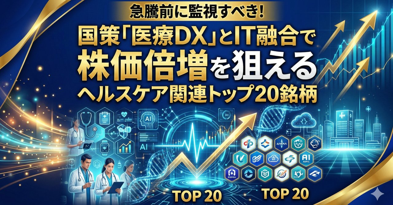 本記事では、単純な知名度ではなく、「技術力の高さ」「シェアの圧倒的優位性」「国策との合致度」を軸に、次のテンバガー(10倍株)候補となり得る20銘柄を厳選しました。病院の基幹システムを支える企業から、AIで新薬開発を加速させるバイオテック、さらには遠隔医療のプラットフォームを握る企業まで、多角的な視点でリサーチしています。