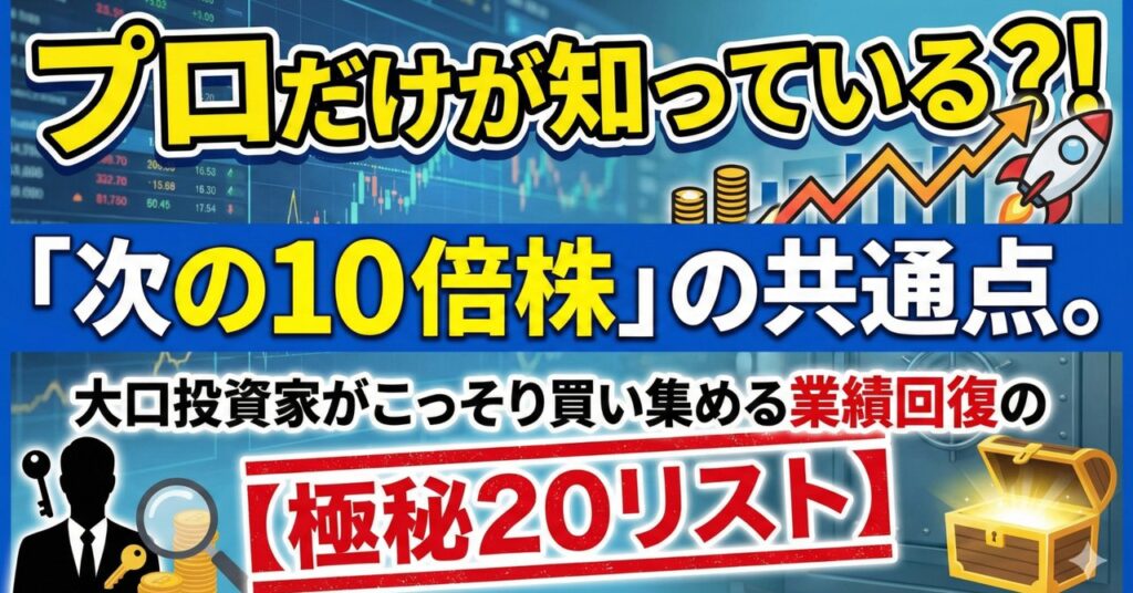 本日は、誰もが知るような大型株ではなく、機関投資家や大口投資家が水面下でこっそりと買い集めている「業績回復からの大化け期待株」というテーマで、厳選に厳選を重ねた20銘柄をご紹介いたします。株式市場において、個人投資家が圧倒的な利益を手にす... -