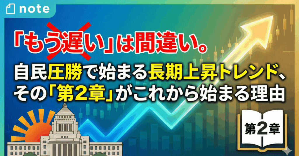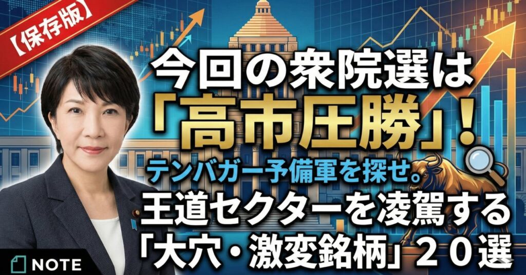 はじめに:市場は「強いリーダー」と「明確な国策」を求めている株式市場において、政治情勢の変化は最大の不確実性であり、同時に最大の収益機会でもあります。「高市圧勝」というシナリオは、単なる政権交代以上の意味を市場に投げかけます。それは、日... -