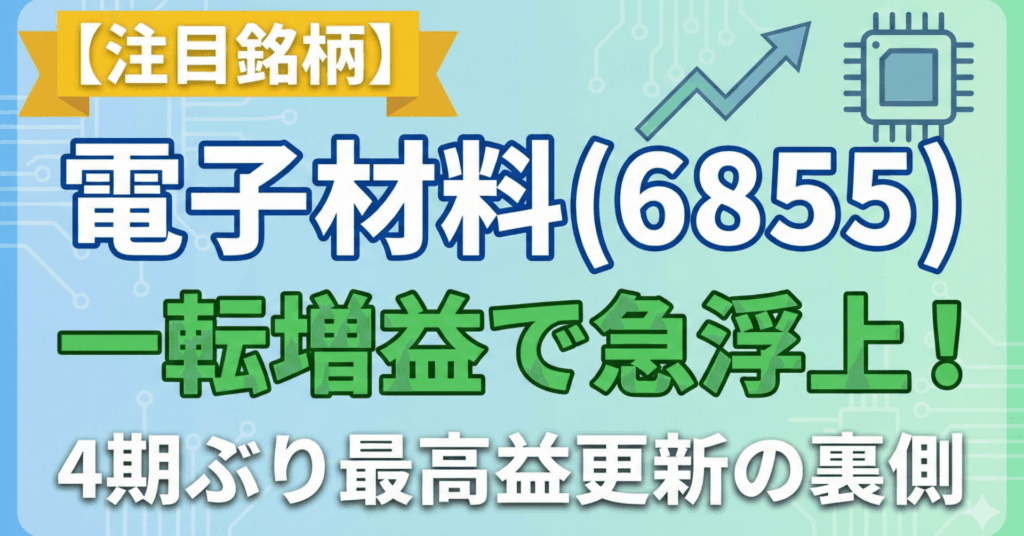【注目銘柄】電子材料(6855)が一転増益で急浮上!4期ぶり最高益更新の裏側