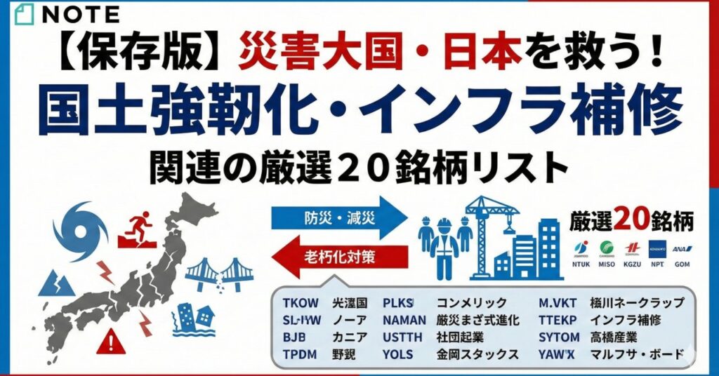 【保存版】災害大国・日本を救う!「国土強靭化・インフラ補修」関連の厳選20銘柄リスト