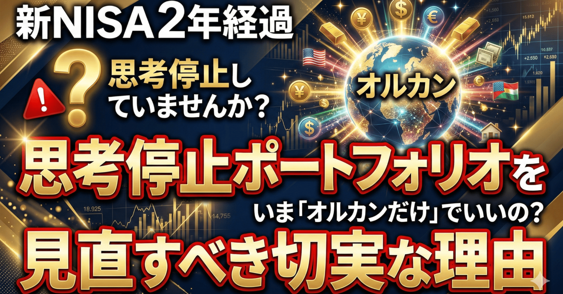 この記事でお伝えしたいのは、オルカン(全世界株式インデックス)を否定することではありません。 オルカンは素晴らしい投資対象です。 しかし、「オルカンだけ買っておけば何も考えなくていい」という思考停止の状態は、投資において最も危険な状態の一つです。