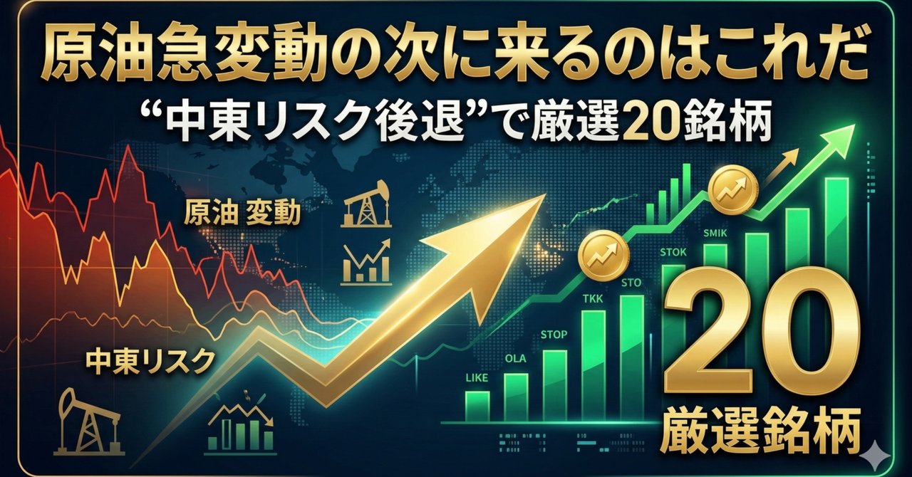 本記事では、単なる大企業(誰もが知るような超大型株)ではなく、この「中東リスク後退」「原油価格の安定」というテーマにジャストフィットし、今後の業績回復・拡大が強力に見込まれる中堅・主力銘柄を中心に、徹底的なリサーチのもと20銘柄を厳選しました。インキ、塗料、化学、物流、食品、そして旅行・インバウンドまで、コスト減の恩恵をフルに享受できる実力派企業ばかりです。次の相場の主役となる可能性を秘めたこれらの銘柄群を、ぜひあなたの投資戦略のポートフォリオに組み入れる検討材料としてください。相場のパラダイムシフトは、行動の早い投資家だけが大きな果実を手にすることができるのです。