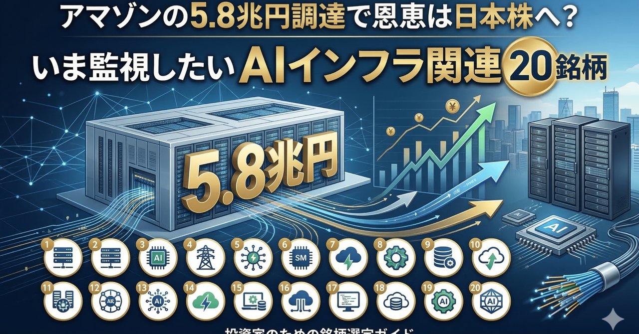 いかがでしたでしょうか。AIインフラと一口に言っても、ケーブル、空調、変圧器、サーバーラック、そしてデータセンター自体の運営・工事など、裾野は広大です。アマゾンの5.8兆円とも言われる巨額投資は、こうした日本企業の売上として着実に落ちてきます。