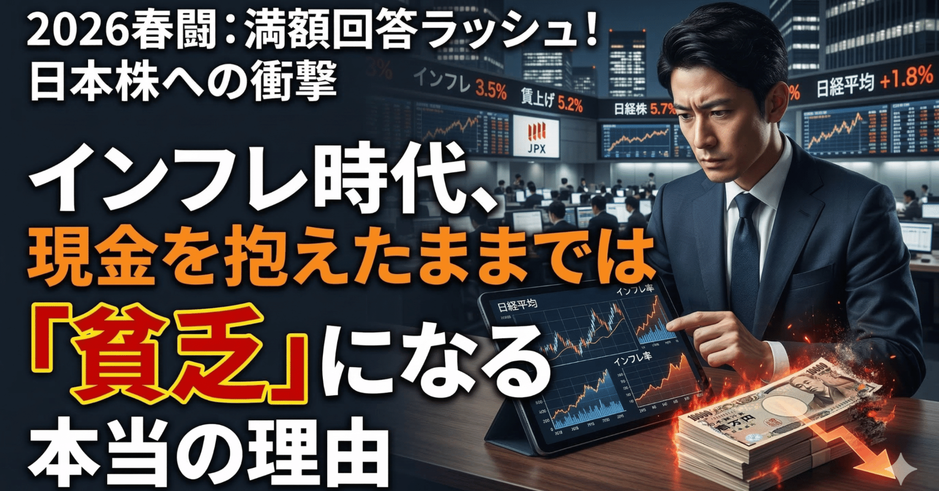 ・現金の価値が下がるインフレ時代において、投資は資産を「増やす」ためではなく、自分の購買力を「守る」ための防具である。 ・春闘の満額回答は、日本がインフレ経済へ移行した強力なシグナルだが、だからといって焦って一括投資をするのは自滅への道である。 ・タイミングを測るのではなく、資金と時間を分割し、明確な撤退基準を持つことだけが、見えない貧乏と相場の暴力から身を守る唯一の手段である。