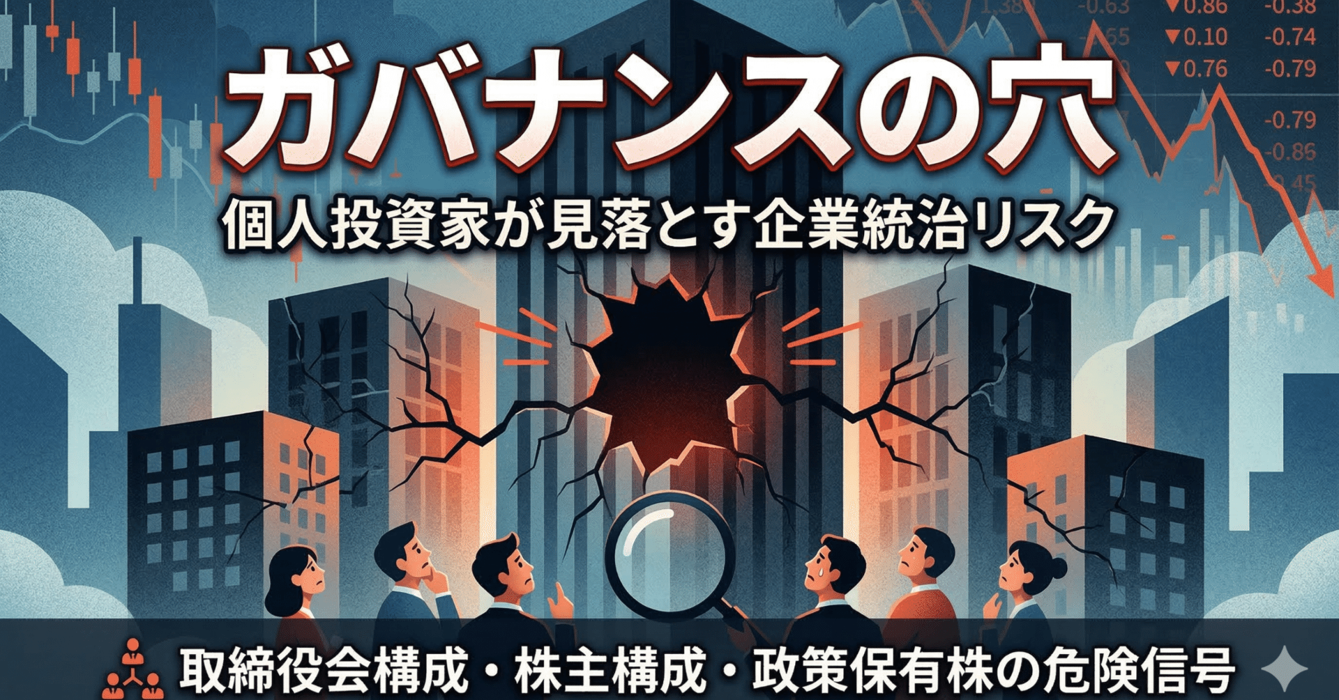 株式投資で失敗した経験を振り返ると、多くの人は業績予想が外れた、景気が悪化した、競争が激しくなった、金利が上がった、そうした「目に見える理由」を挙げる。たしかにそれらは株価を動かす直接の材料であり、無視できない。しかし実際には、そのもっと手前に、数字に表れる前から会社の進路をじわじわとゆがめているものがある。それがガバナンス、つまり企業統治の問題だ。