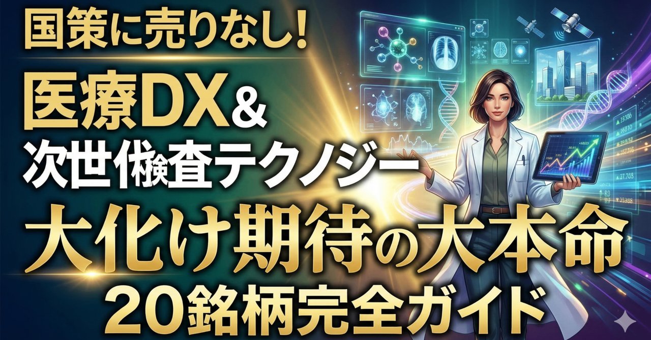 本記事では、誰もが知っているような超大型株(例えばトヨタ自動車や大手製薬メーカーなど)はあえて除外しました。なぜなら、真の「大化け」を狙うのであれば、特定のニッチ市場で圧倒的なシェアを持つ中小型株や、独自の革新的技術を武器に急成長を遂げている成長企業にこそ妙味があるからです。今回は、東京証券取引所に上場している実在の企業の中から、医療DXと次世代検査テクノロジーの恩恵をフルに享受し、今後の株価の大きな飛躍が期待できる大本命20銘柄を厳選し、深くリサーチした情報をもとにご紹介します。