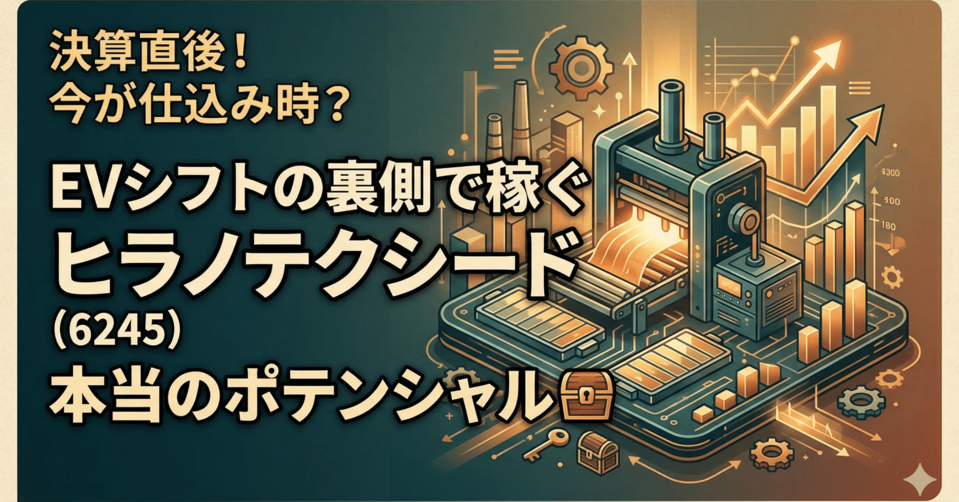 ・ヒラノテクシードがなぜ国内外のトップメーカーから選ばれ続けるのか、その競争優位の源泉 ・「受注高」「受注残高」「売上高」という、装置メーカー特有の業績シグナルの正しい読み解き方 ・EVシフトという追い風が、どのタイミングで逆風に変わるリスクがあるのか ・業績の波を乗りこなし、中長期的な成長を享受するために投資家が監視すべき具体的なチェックポイント