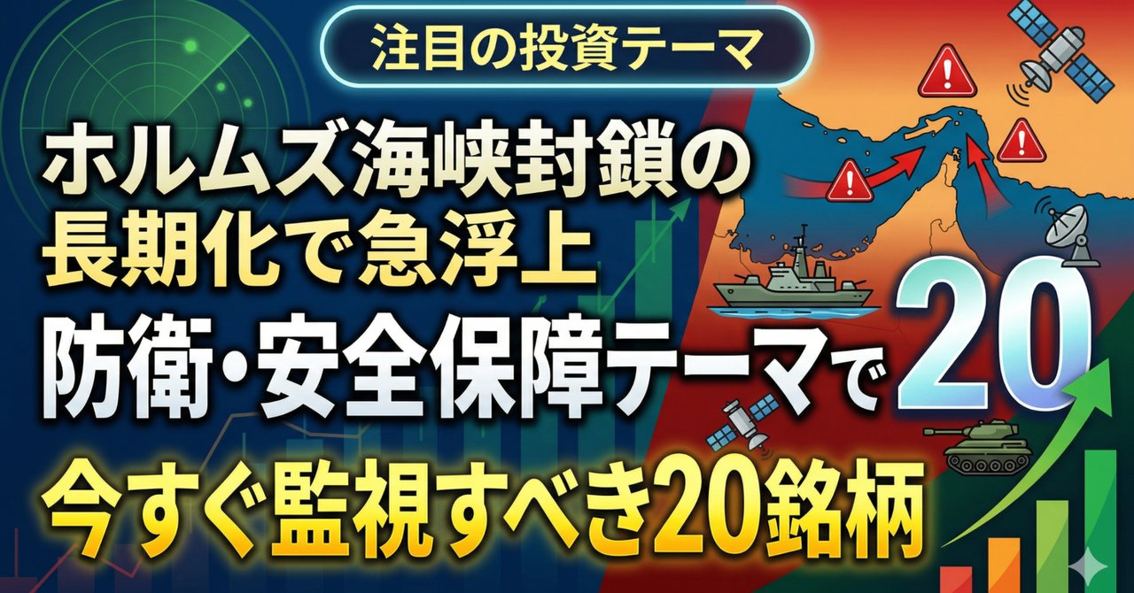世界の原油輸送の約2割、そして日本が輸入する原油の約8割から9割が通過するホルムズ海峡。この大動脈が長期的に封鎖されるという事態は、単なる「中東の地政学リスク」という言葉では片付けられない、日本経済にとって死活問題となるシナリオです。エネルギー価格の暴騰によるインフレ圧力、シーレーン(海上交通路)防衛の必要性の急激な高まり、そして周辺国における軍事的緊張の波及など、株式市場においては「防衛力強化」「エネルギーの自給・代替ルート確保」「海上輸送の安全保障」が最もホットなテーマとして長期間資金を集めることになります。