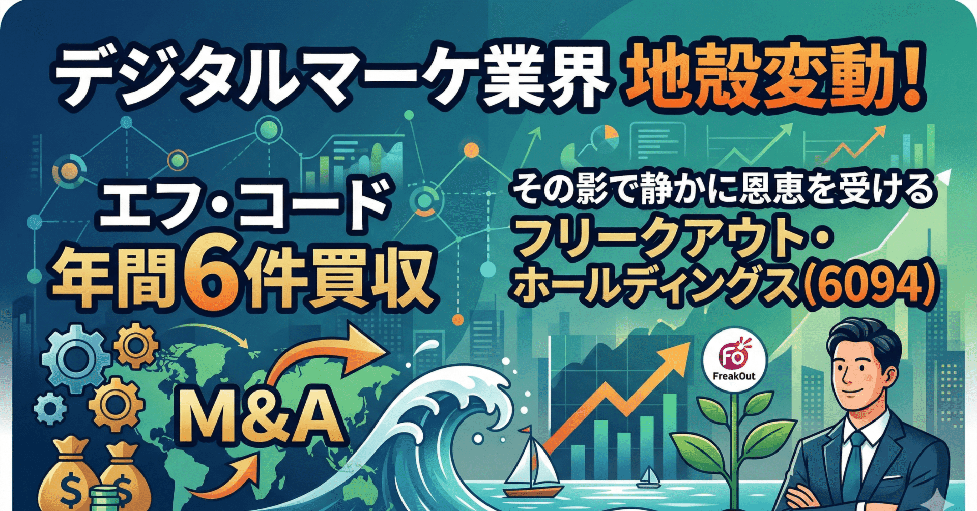 ここで、同じデジタルマーケティング業界で近年目覚ましいM&Aを展開しているエフ・コードと比較することで、フリークアウトの勝ち方の違いを浮き彫りにします。