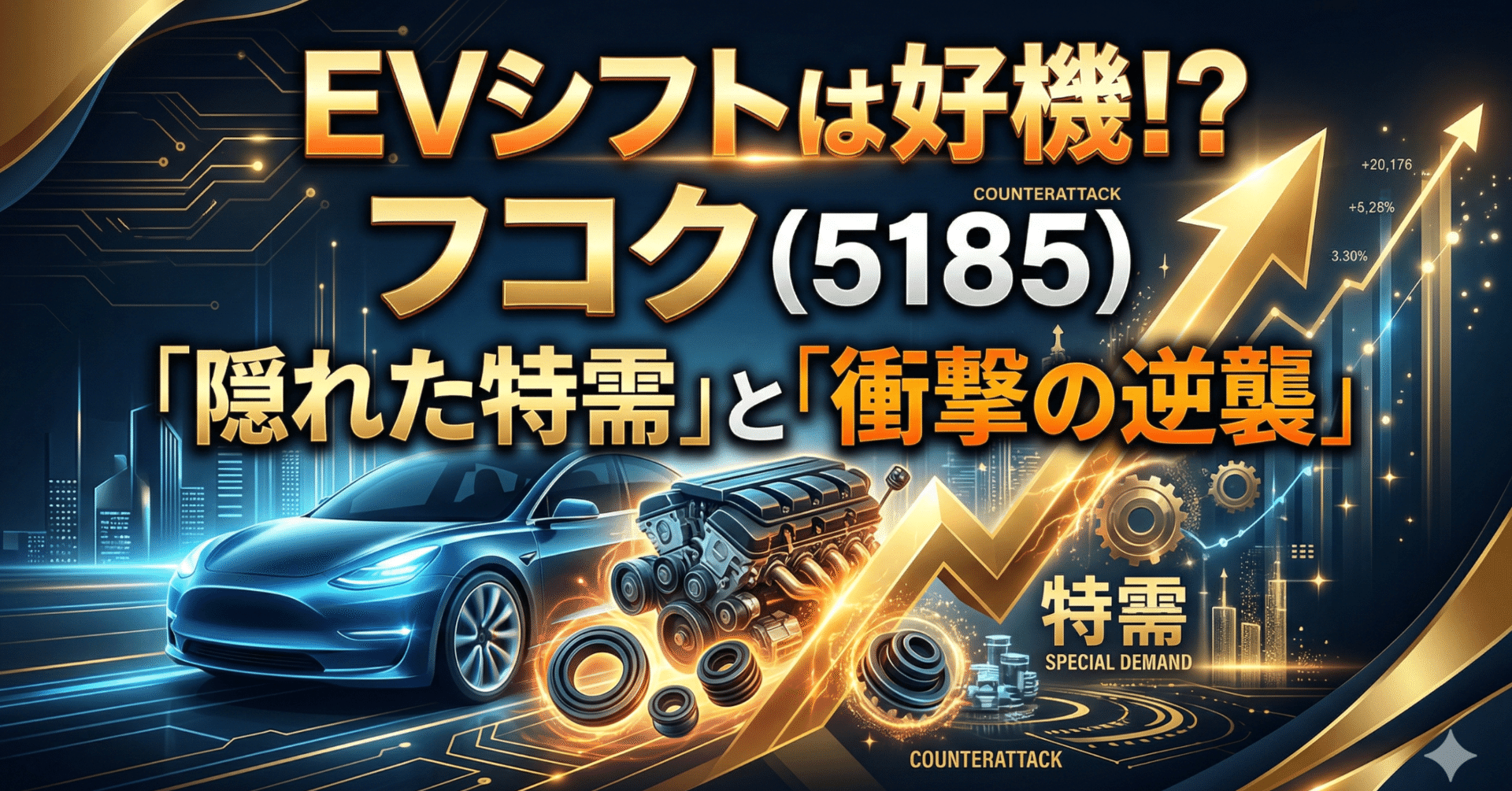 EVシフトの逆手利用(防振ゴムの高度化) 一見ネガティブなEVシフトですが、実はここに同社の「知られざる逆襲」のストーリーが隠されています。EVは重いバッテリーを積むため車体重量が増加し、同時にエンジン音がなくなるため、ロードノイズやモーターの微小な振動が車内で目立つようになります。つまり、EV化によって、より重い車体を支え、より微細な振動を吸収できる「高度な防振ゴム」の需要が急増するのです。エンジン部品の減少というマイナスを、この高単価・高機能な防振ゴムの需要増というプラスでどれだけ上回れるかが、最大の必要条件となります。
