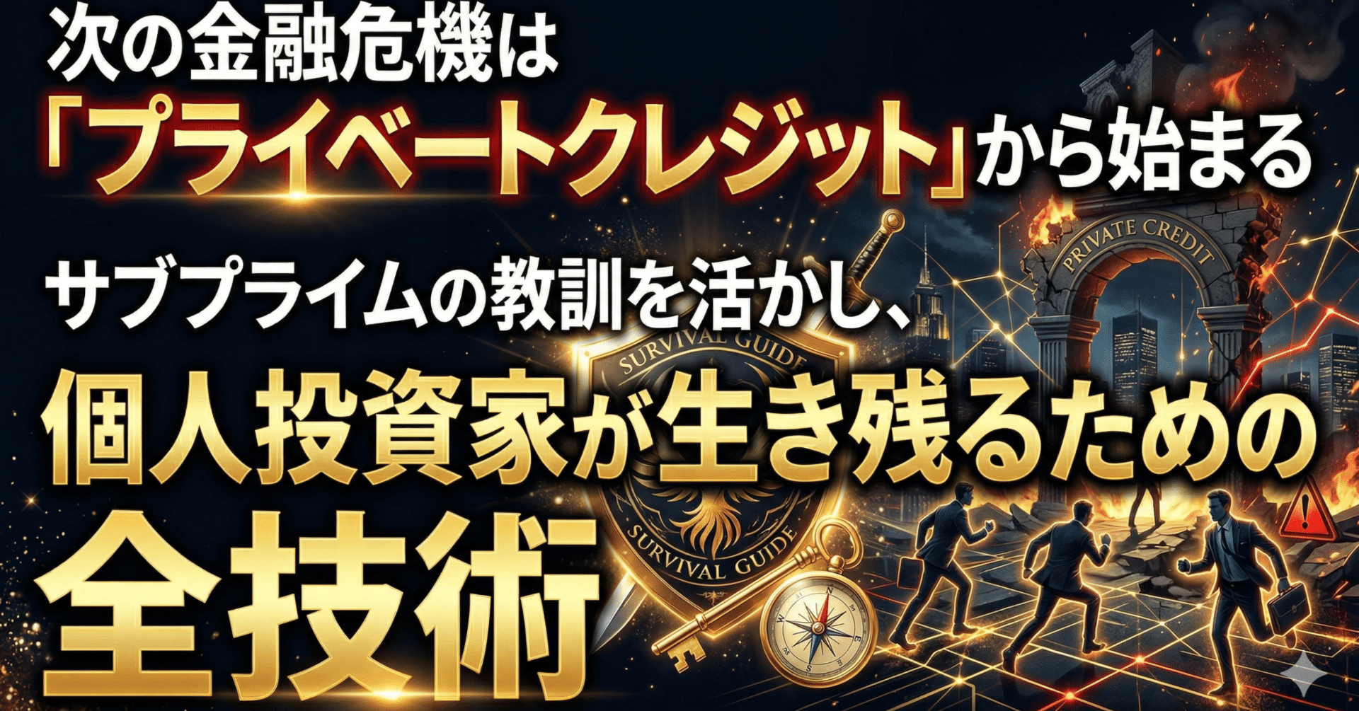 本書の目的は明確である。第一に、プライベートクレジットというわかりにくい市場の構造を、個人投資家の視点から徹底的に見える化すること。第二に、サブプライム危機から本当に学ぶべき教訓を整理し、単なる歴史の知識ではなく、いまの市場を読むための武器に変えること。第三に、もし信用危機が現実になったとき、個人投資家は何を見て、何を避け、どう行動すればよいのかを具体的な技術として落とし込むこと。そして第四に、危機をただ恐れるのではなく、危機後に訪れる資産移動や再編の局面まで視野に入れ、生き残るだけでなく、その先で勝つための考え方を身につけることである。