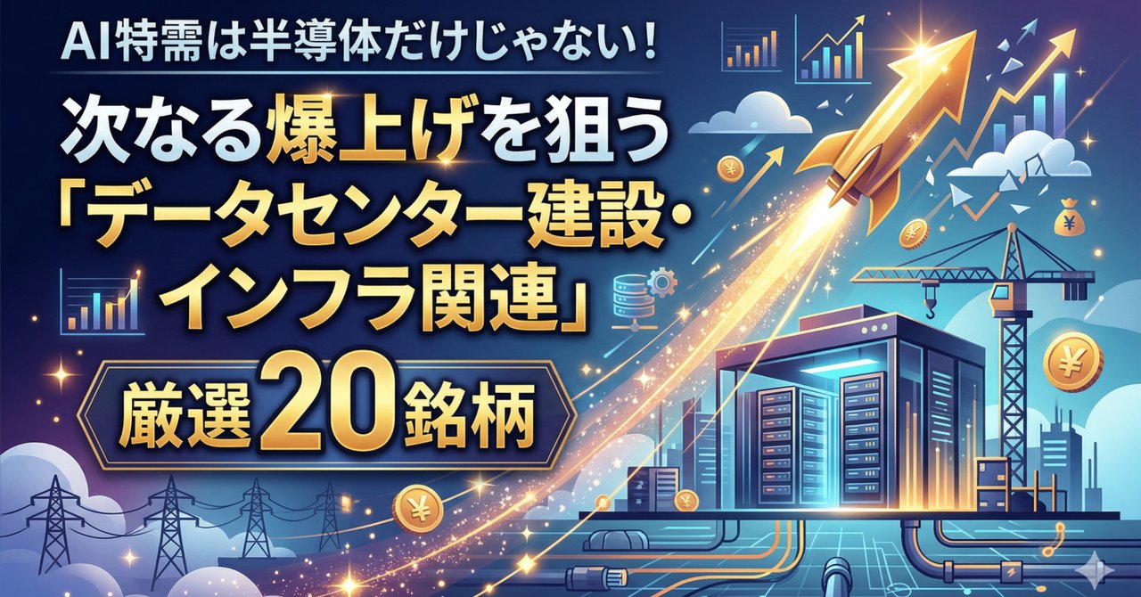 本記事では、AI相場の「ツルハシ(インフラ)」として、これから本格的な業績拡大と株価上昇が期待される、データセンター建設・インフラ関連の厳選20銘柄を徹底解説します。誰もが知る巨大企業ではなく、特定のインフラ領域で圧倒的なシェアと技術力を誇る「知られざる優良企業」を中心にピックアップしました。