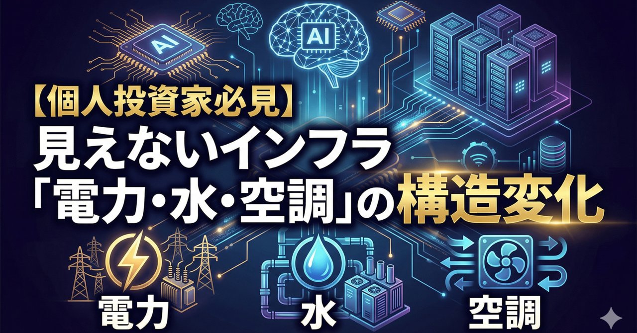 しかし、株式市場において中長期的に強固なトレンドを形成するのは、往々にしてスポットライトの当たらない「裏側」の産業です。現在、日本の産業構造を根底から揺るがしているのは、最先端のテクノロジーを物理的に支えるための電力、水資源、そして空調や通信網といった「見えないインフラ」の圧倒的な不足です。