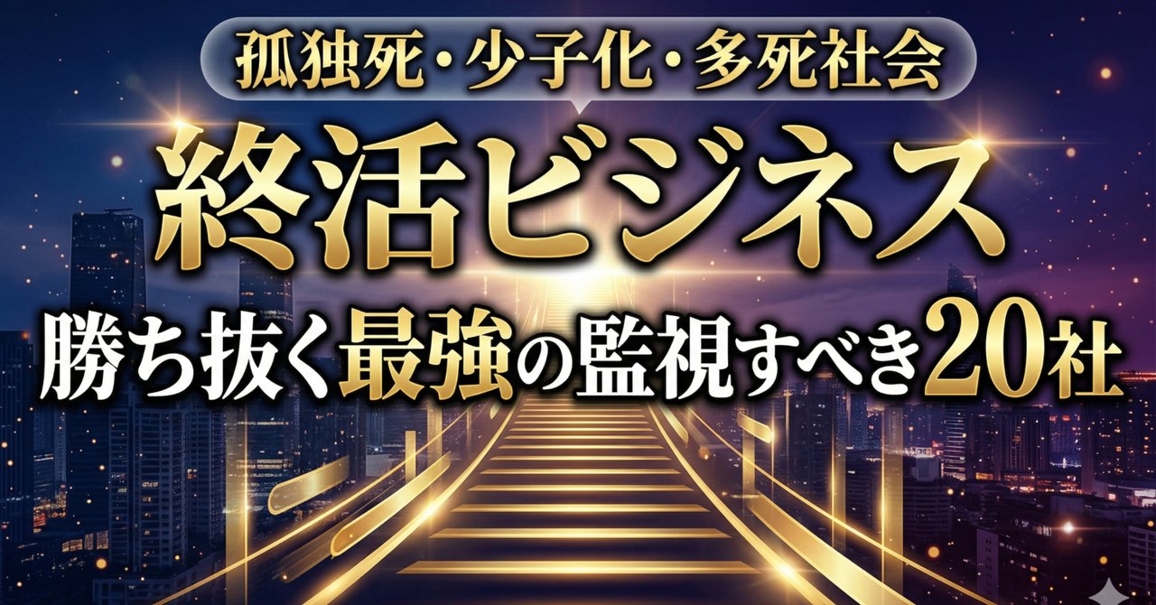 本記事では、この「終活ビジネス」という広大で不可逆的なテーマにおいて、独自のビジネスモデルと強みを持ち、多死社会を勝ち抜くポテンシャルを秘めた企業を厳選して20銘柄ご紹介します。誰もが知るような大型株ではなく、特定のニッチ市場で確固たる地位を築きつつある中小型株を中心にピックアップしました。投資家の皆様の新たなポートフォリオ構築のヒントとして、ぜひお役立てください。