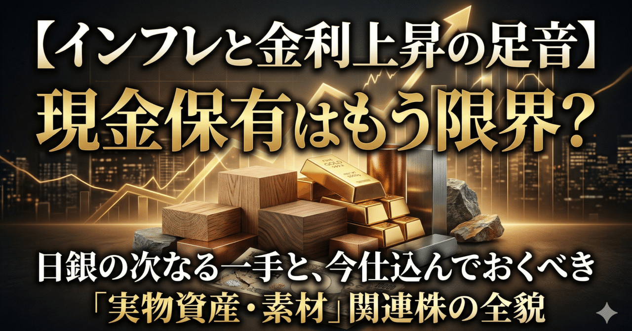 この解釈が正しいとするなら、皆様には話題の銘柄に飛び乗る以外の選択肢を持っていただきたいのです。 具体的には、すでに急騰している銘柄の押し目を、中途半端な位置で拾うのは避けるべきです。 私のこの見立ての前提は、日銀が緩やかな利上げを継続し、市場に急激なショックを起こさないことです。 もし想定以上のインフレ加速で急ピッチな利上げが発表されれば、この前提は崩れます。 その時は実物資産テーマも全体相場の急落に巻き込まれるため、私は強気の見立てを完全に撤回します。