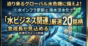 東京証券取引所における、今まさに仕込むべき「水インフラ関連銘柄」を厳選してご紹介します。 水は生命の...