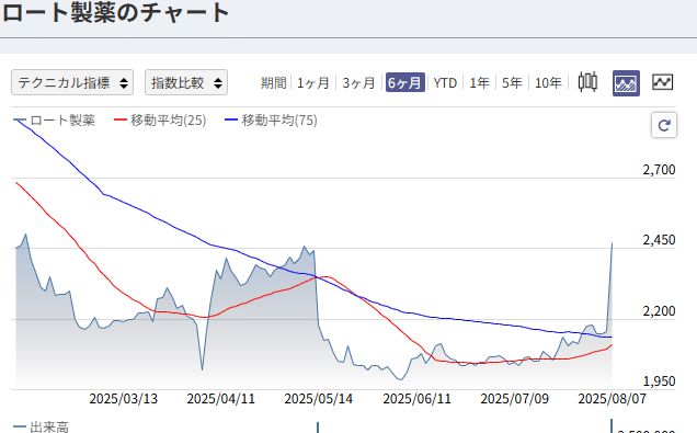 Vロート」「肌ラボ」「メンソレータム」「オバジ」――。これらのブランド名を聞いて、商品を一つも使ったことがないという日本人を探すのは難しいかもしれません。私たちにとってあまりにも身近な存在であるロート製薬株式会社(銘柄コード:4527)の株価が、今、市場で大きな注目を集めています。2024年以降、その株価は力強い上昇トレンドを描き、多くの投資家の熱視線を集める「スター銘柄」へと変貌を遂げました。では、なぜロート製薬はこれほどまでに評価されているのでしょうか?そして、その成功の裏には、日本株市場の未来を読み解くどのようなヒントが隠されているのでしょうか。