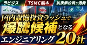 夏前のロードマップ公表で、合成生物学・バイオ分野の具体的な投資規模と工程表が示され、市場の関心が一段高まる。フードテックで動いた銘柄の一部と重複物色が起きるため、テーマとしては比較的長く続く可能性があります。