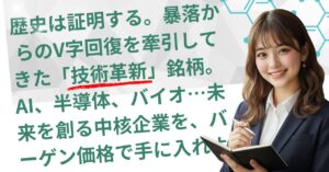 ◎ 注目理由: 自動車生産の回復や、航空機需要の増加が追い風。EV化の進展に伴い、モーターやバッテリーに使用される高性能磁石などの需要も拡大している。PBRは0.5倍程度と極めて割安であり、配当利回りも高い。景気敏感株ではあるが、技術的な優位性は高く、市況回復時の株価上昇ポテンシャルは大きい。
