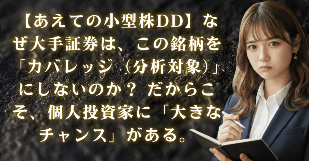 【あえての小型株DD】なぜ大手証券は、この銘柄を「カバレッジ(分析対象)」にしないのか? だからこそ、個人投資家に「大きなチャンス」がある。