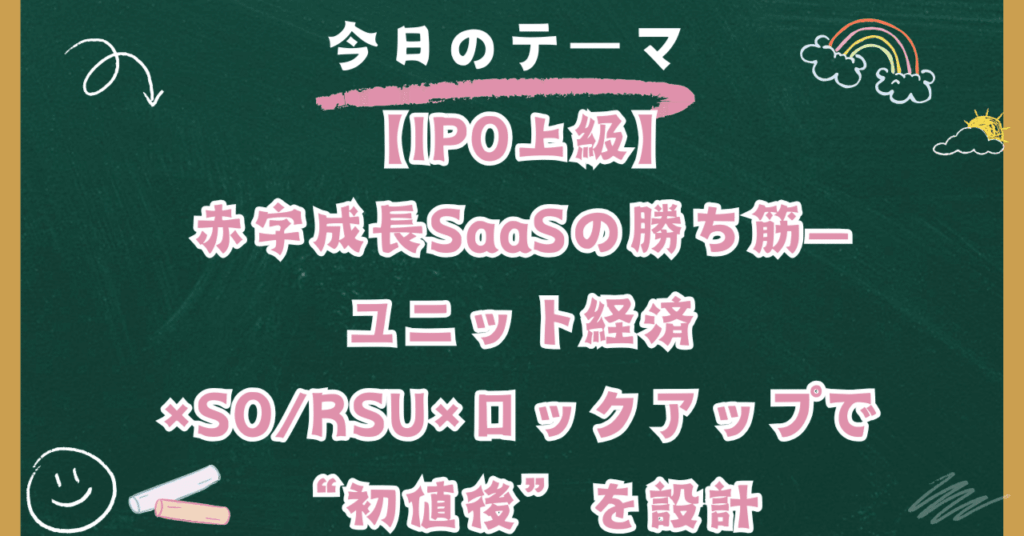 【IPO上級】赤字成長SaaSの勝ち筋—ユニット経済×SO/RSU×ロックアップで“初値後”を設計