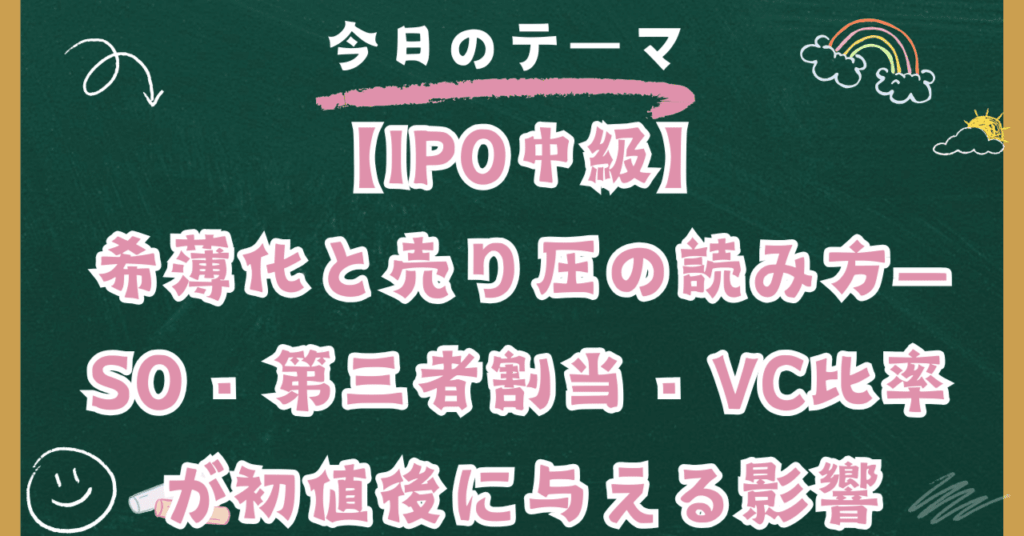 【IPO中級】希薄化と売り圧の読み方—SO・第三者割当・VC比率が初値後に与える影響
