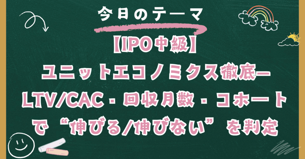 【IPO中級】ユニットエコノミクス徹底—LTV/CAC・回収月数・コホートで“伸びる/伸びない”を判定
