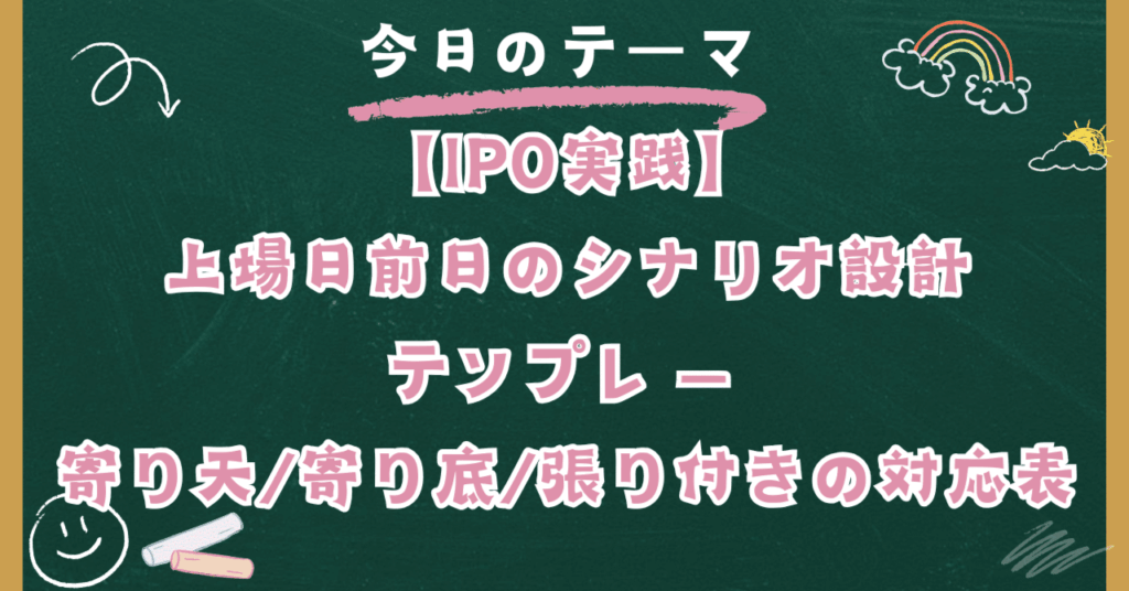 【IPO実践】上場日前日のシナリオ設計テンプレ — 寄り天/寄り底/張り付きの対応表