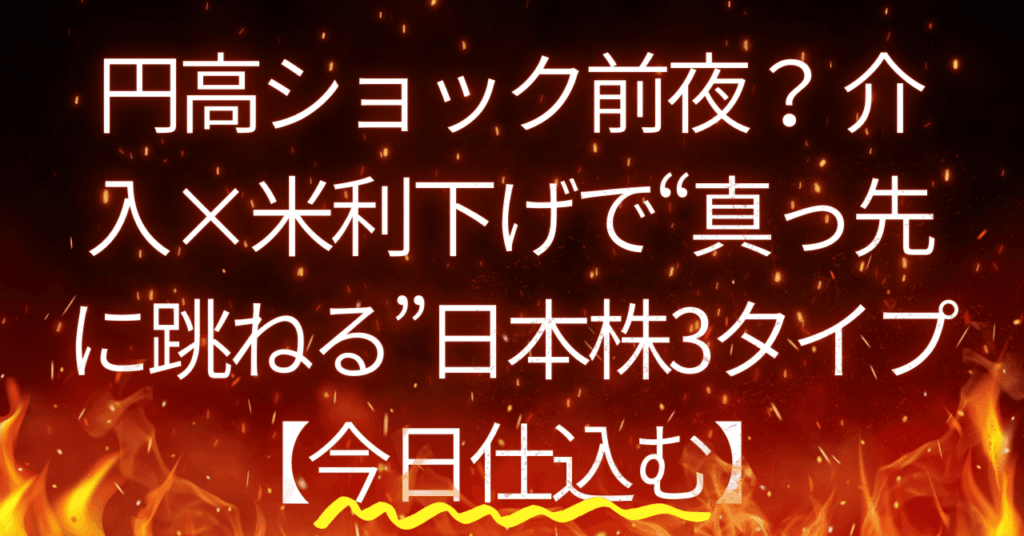 円高ショック前夜? 介入×米利下げで“真っ先に跳ねる”日本株3タイプ【今日仕込む】