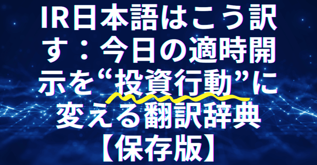 IR日本語はこう訳す:今日の適時開示を“投資行動”に変える翻訳辞典【保存版】