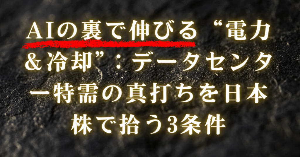 AIの裏で伸びる“電力&冷却”:データセンター特需の真打ちを日本株で拾う3条件