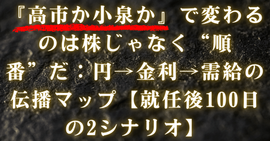 『高市か小泉か』で変わるのは株じゃなく“順番”だ:円→金利→需給の伝播マップ【就任後100日の2シナリオ】