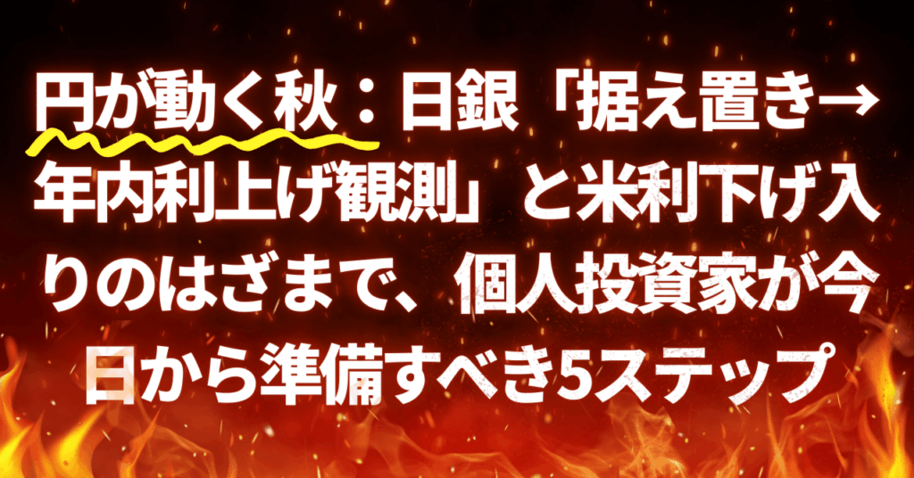 円が動く秋:日銀「据え置き→年内利上げ観測」と米利下げ入りのはざまで、個人投資家が今日から準備すべき5ステップ