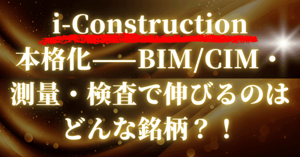 i-Construction本格化——BIM/CIM・測量・検査で伸びるのはどんな銘柄?!