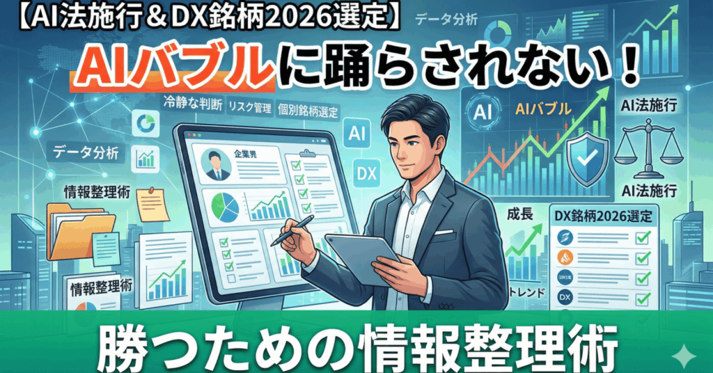 AI法施行とDX銘柄2026選定が始まった今、個人投資家が「AIバブル」に踊らされずに勝つための情報整理術